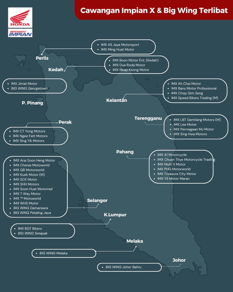 Untuk maklumat lanjut, sila layari Laman Utama - Honda Motorcycle: Impian X atau Laman Utama - Honda BigBikes.