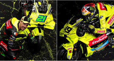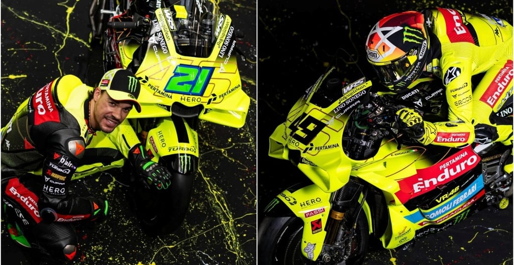 Pasukan VR46 Ducati yang mendapat tajaan syarikat gergasi petroleum Indonesia itu masih mengekalkan identiti kuning fluoresen ikonik milik Rossi, namun buat pertama kali meninggalkan warna putih yang digunakan sejak dua musim lalu